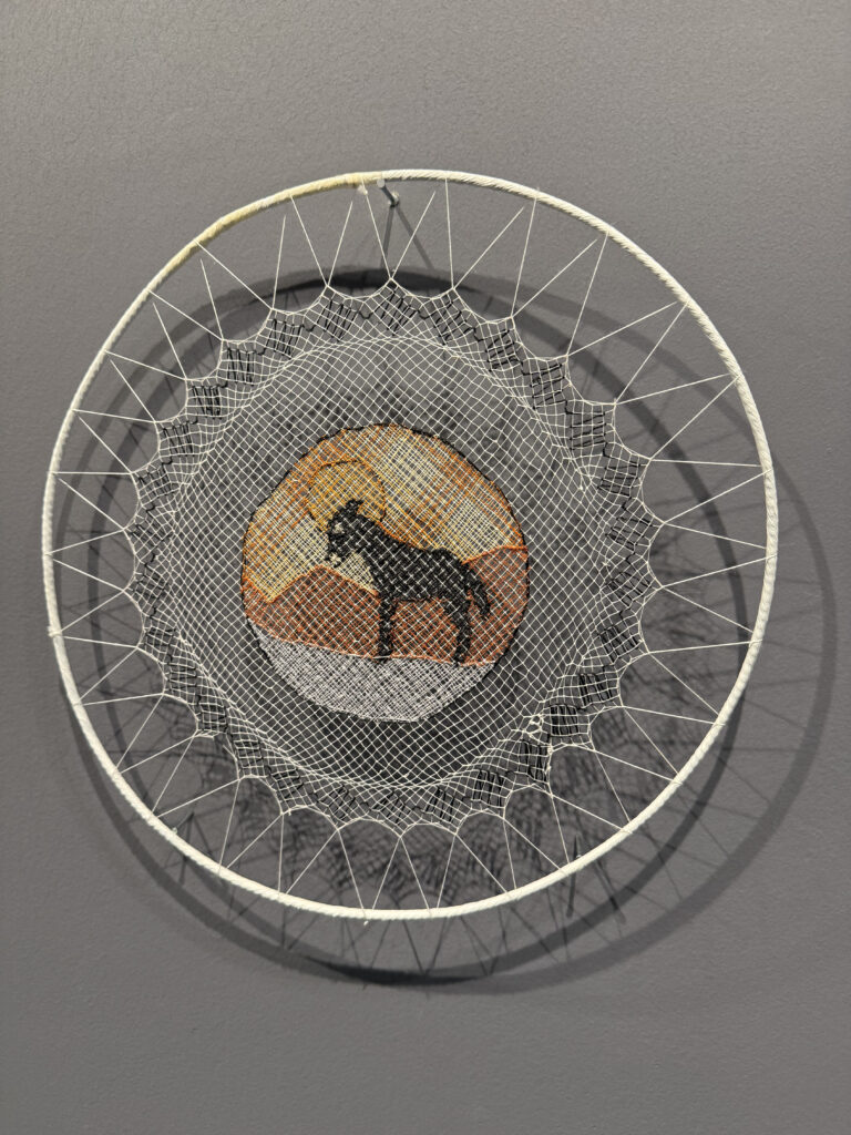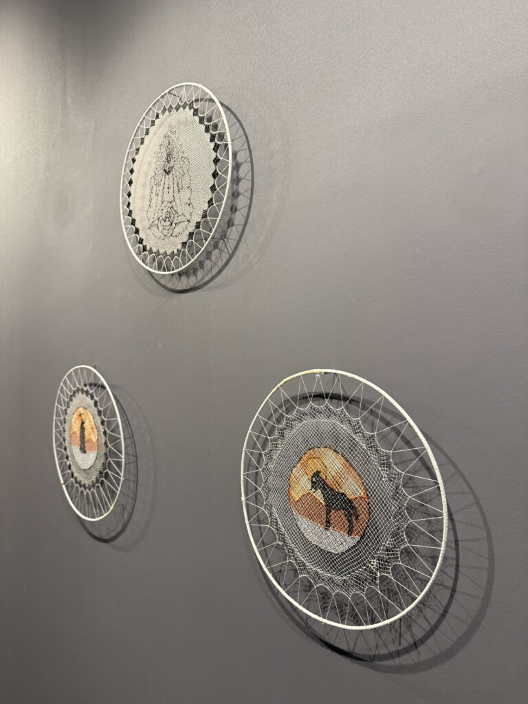 Después me encuentro con la obra de Marcela, y el mood cambia completamente. Hay una calma. Su trabajo tiene un nivel de detalle increíble, pero sin ser pesado, al contrario… te transmite paz. El uso del encaje (la randa), tan tradicional, llevado a esas dimensiones, es algo que se aplaude. Su sencillez a la vista crea un mensaje poderoso