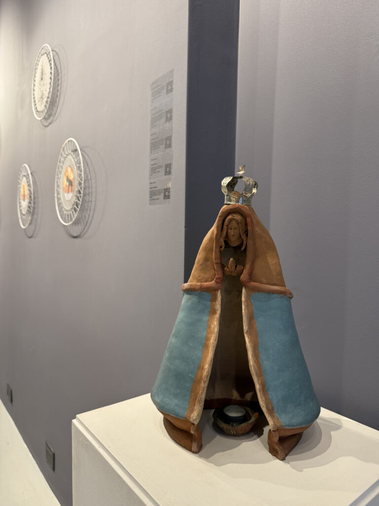 Y por último, me detengo en las vírgenes de Richar. La velita encendida le da una presencia distinta, más íntima. Como orfebre, no pude evitar fijarme en las coronas de metal, súper bien trabajadas, que acompañan las piezas. Están hechas con barro de Itatí, y toda esa mezcla de materiales y origen se siente. Te hace quedarte mirando.